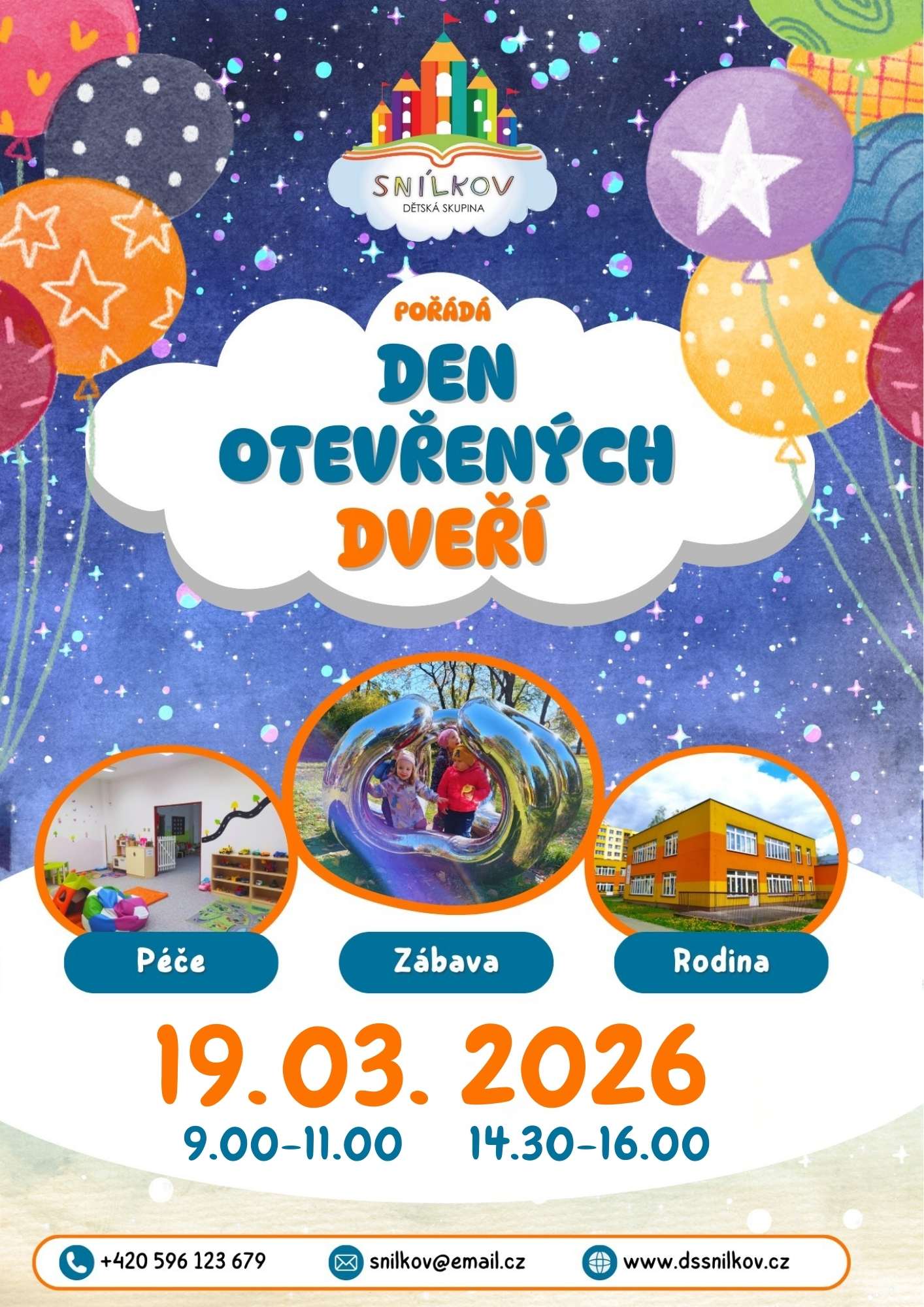 srdečně vás zveme na Den otevřených dveří v naší dětské skupině Snílkov! Přijďte si prohlédnout naše prostory, seznámit se s naším přístupem k péči a vzdělávání dětí a zažít příjemnou atmosféru plnou her a radosti.
